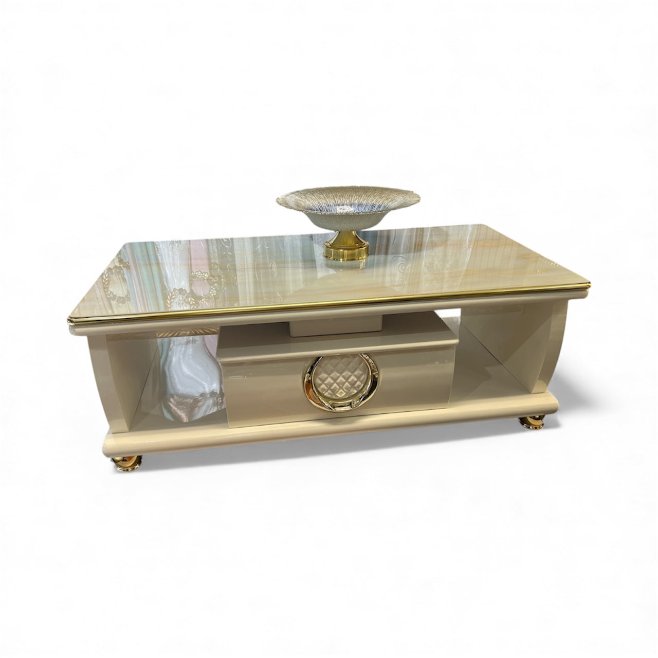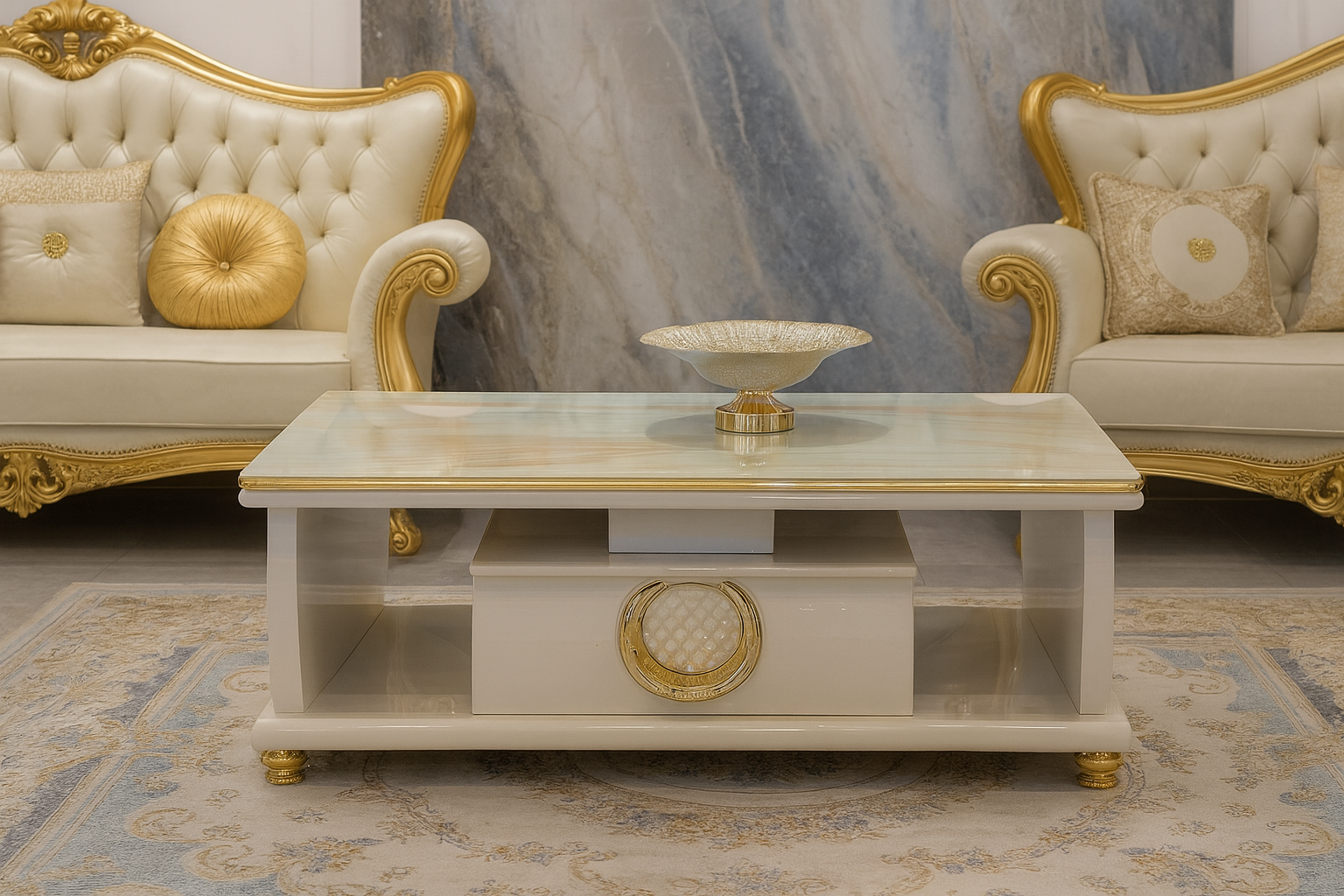 - Små guldfärgade ben/fötter som lyfter bordet och förstärker den klassiska stilen.